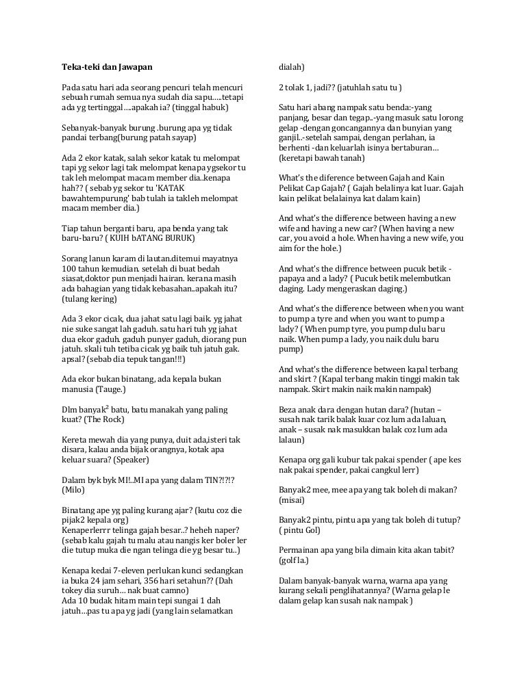 Sebab polis nak beli ais -krim. 20 mengapa guru sejarah selalu botak di bahagian belakang kepala sdangkan profesor dibahagian depan. Burung ape bela atuk dia.